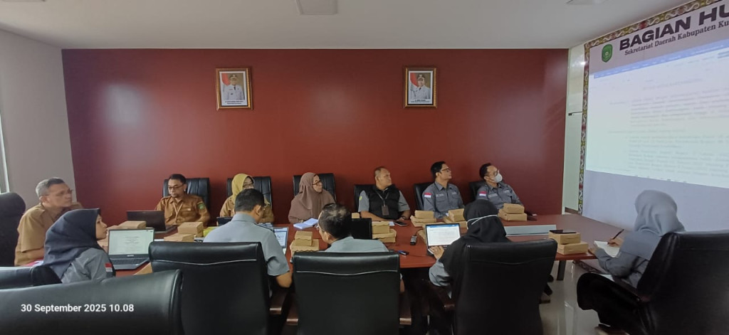 Kepala Bagian Hukum Sekretariat Daerah Kabupaten Kutai Kartanegara, Bapak PURNOMO, S.H., M.H., memimpin rapat pada hari Selasa, 30 September 2025, untuk memantapkan konsep Rancangan Peraturan Bupati tentang Pemberian Beasiswa dan Bantuan Pendidikan dan Rancangan Peraturan Daerah tentang Rencana Pembangunan Jangka Menengah Daerah (RPJMD) Tahun 2025-2029.