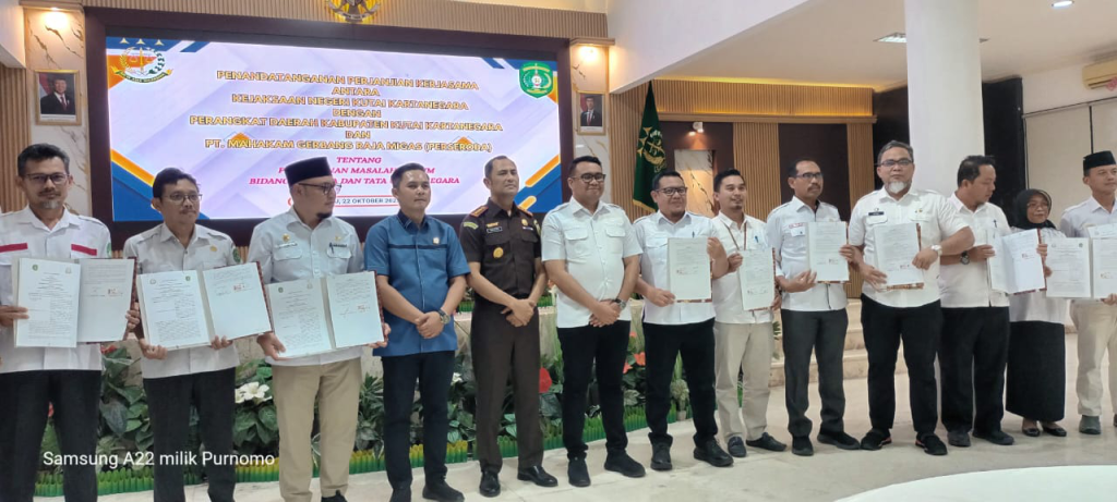 jdih.kukarkab.go.id - JDIHKUKAR – TENGGARONG - Kepala Bagian Hukum, Bapak PURNOMO, SH., MH hadir dalam acara Penandatangan Perjanjian Kerjasama antara Pemerintah Kabupaten Kutai Kartanegara dengan Kejaksaan Negeri Kutai Kartanegara terkait Pelaksanaan Bantuan Hukum, Penanganan Hukum, Pendampingan Hukum dan Konsultasi Hukum di Bidang Hukum Perdata dan Hukum Tata Usaha Negara. Kegiatan ini dilaksanakan pada hari Rabu, 22 Oktober 2025 di Kantor Kejaksaan Negeri Kutai Kartanegara. Kegiatan penandatangan perjanjian kerjasama ini dihadiri oleh Bupati Kutai Kartanegara Bapak dr. AULIA RAHMAN BASRI, M. Kes, Sekretaris Daerah, Kepala Bagian Hukum dan pimpinan perangkat daerah Kabupaten Kutai Kartanegara serta perwakilan BUMD.
